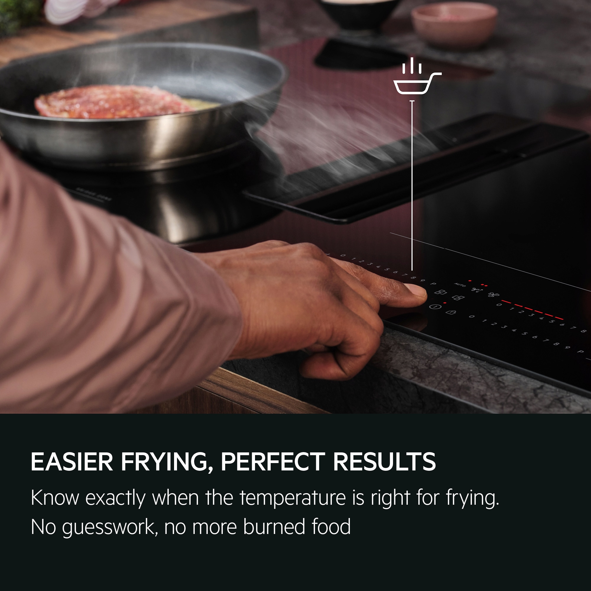 The 7000 SenseFry® Extractor Hob lets you know when your frying pan reaches the optimal temperature and maintains even heat for perfect taste and texture. It also has a powerful built-in extractor that rids your kitchen of steam and odours.