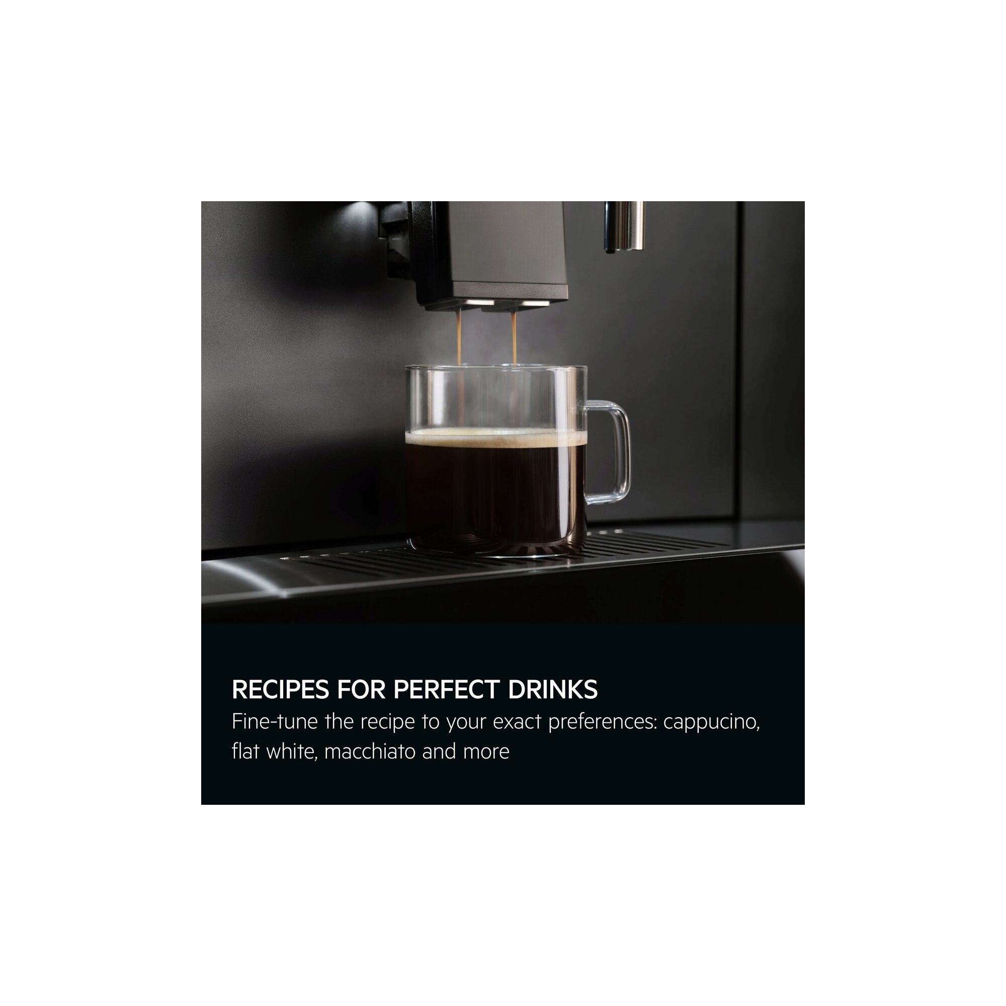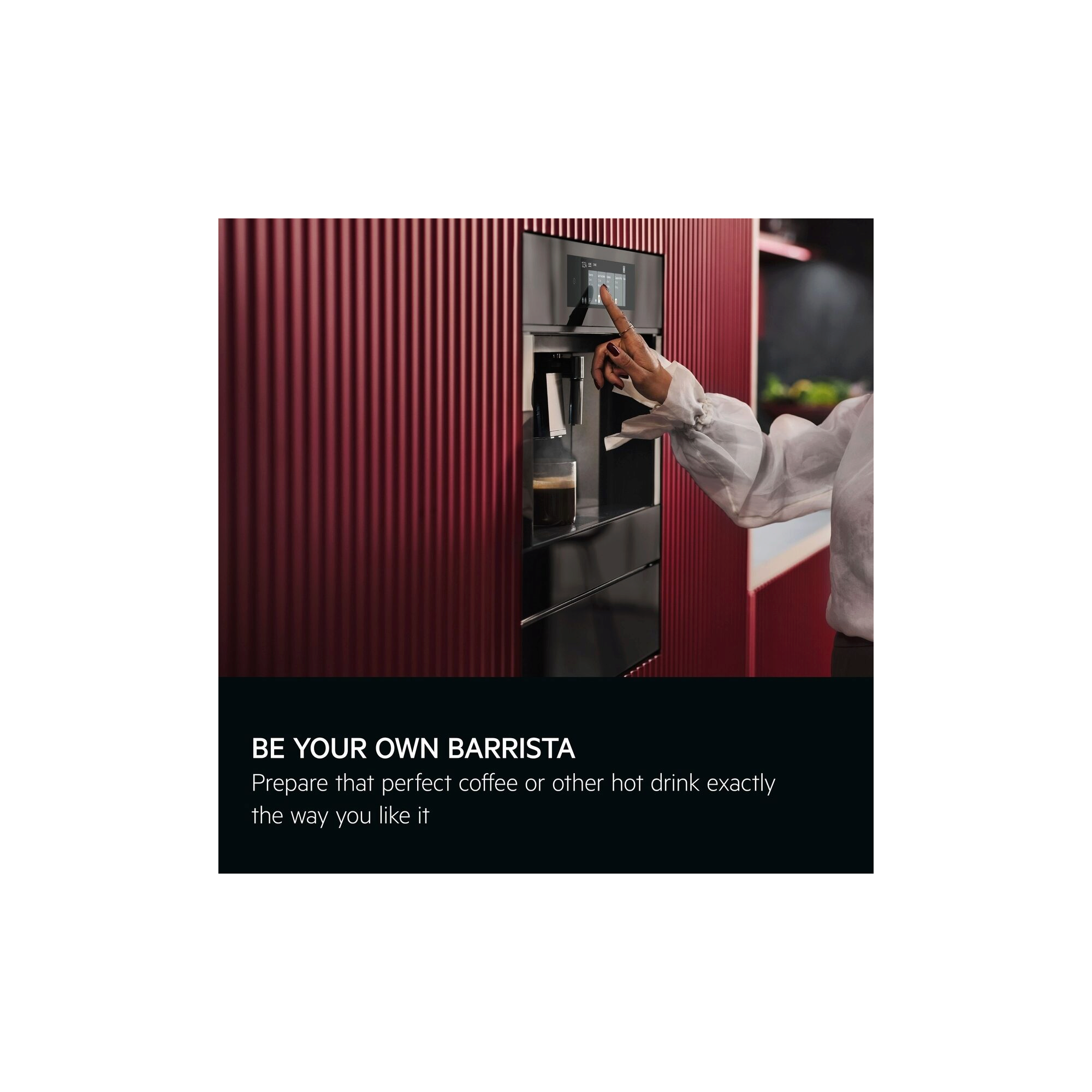 Built-in espresso bar with extra-wide, Touch control for efficient navigation. Prepare and enjoy a selection of coffee, espresso, and other hot drinks exactly the way you want them at home.