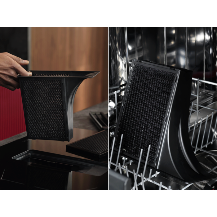 The 6000 Bridge Extractor Hob combines an induction hob to fit a 60cm cabinet, with a powerful built-in extractor for optimal air flow. It also has a Bridge function, allowing you to combine two cooking zones into one for larger cookware.