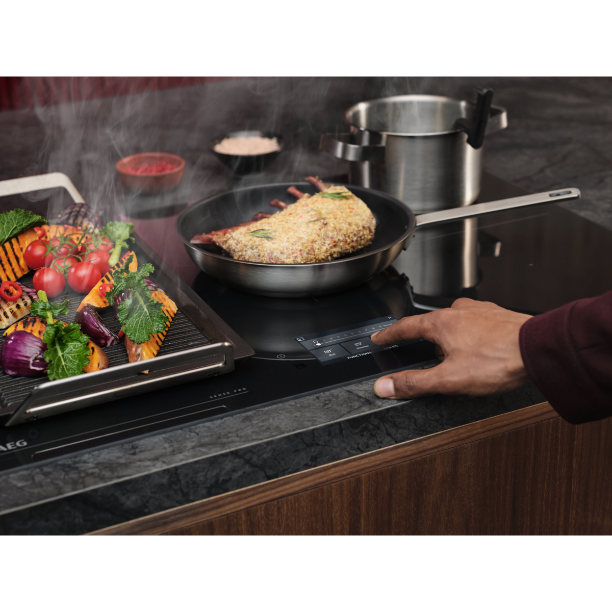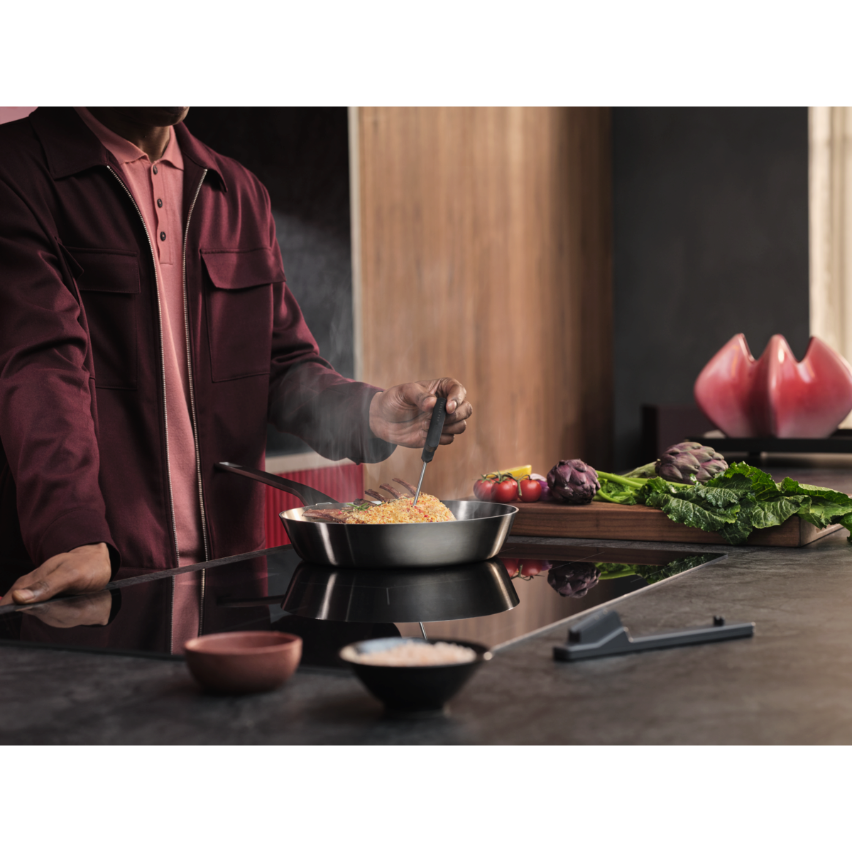 The 9000 SensePro® Induction hob has a wireless food sensor that measures the food temperature and automatically adjusts the hob settings for precise heating. Elevate the taste and texture to perfection, no matter what you’re cooking.