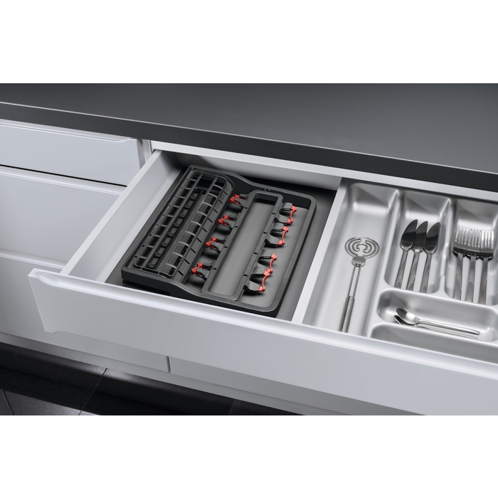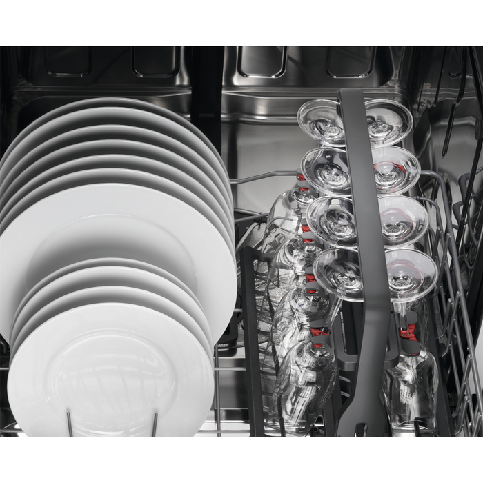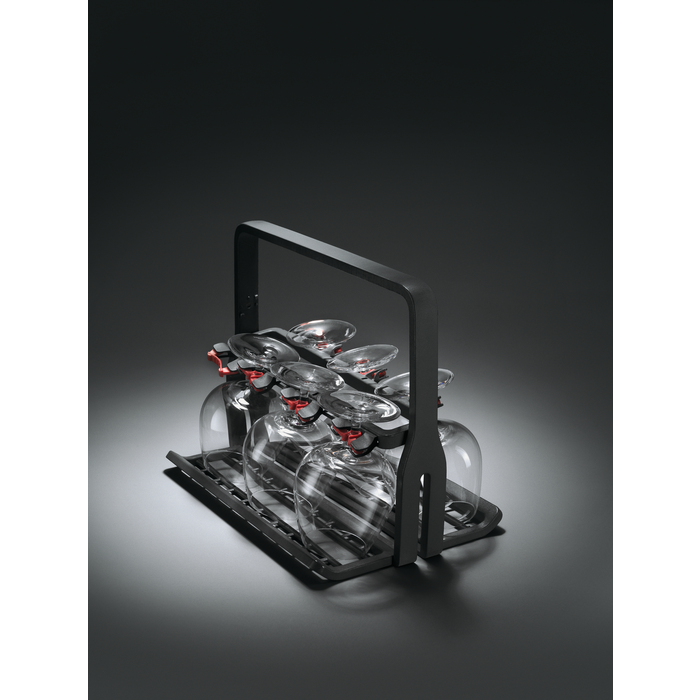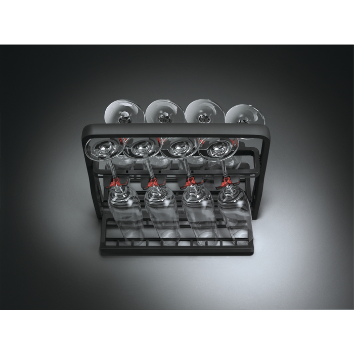 The new AEG Glass Basket gives you the confidence to put your most delicate glasses in the dishwater. With greater capacity and flexibility than other in-dishwasher systems, the Glass Basket holds up to 8 wine glasses softly but firmly, and in complete safety. So you can use and wash your most beautiful glasses as often as you like. Universal fit for all 60 and 45 cm dishwashers and folds flat for easy storage when not in use.