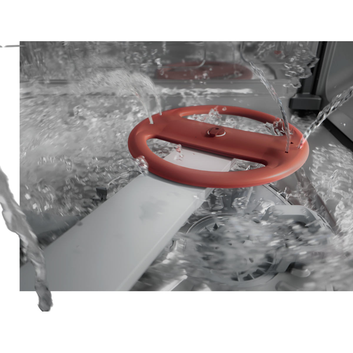 Series 6000 delivers powerful water coverage with multi-angled spray arm. The control panel has easy-to-operate time-based cycle selection whilst the baskets are spacious, with a height-adjustable upper basket.