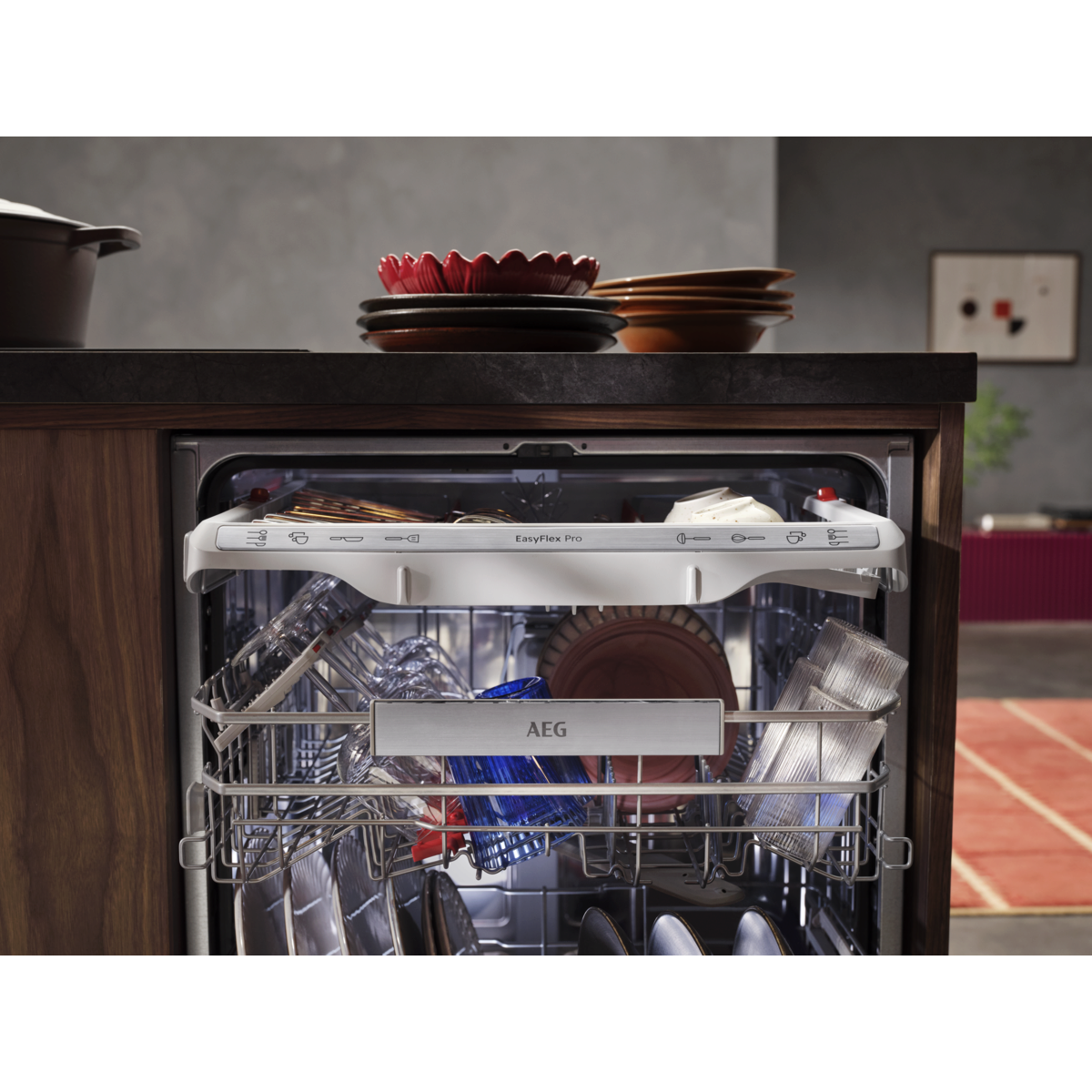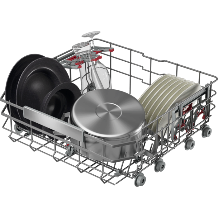 The 9000 series: Multi-functional, smooth-gliding baskets and cutlery drawer. Holders to secure glasses and trays. Powerful cleaning removes baked-on or dried food residues. High-efficiency water system uses as little as 8.4 litres of water.