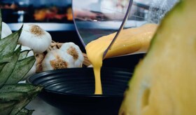 - For the salad dressing, blitz everything together in a blender (Pineapple, chili, sesame oil, apple cider, lime, garlic, salt and pepper).